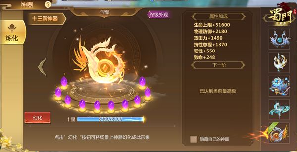 涅槃而生 《蜀门手游》十三阶神器问世