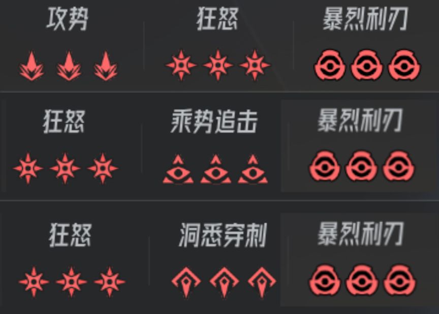 如果想输出最大化,推荐狂怒+乘势追击+暴烈利刃