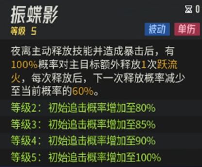 如果触发了这个被动三次,那三次的概率是100%,60%,36%,以此递减,夜离触发追击的数学期望次数是2.5次左右。推荐点满