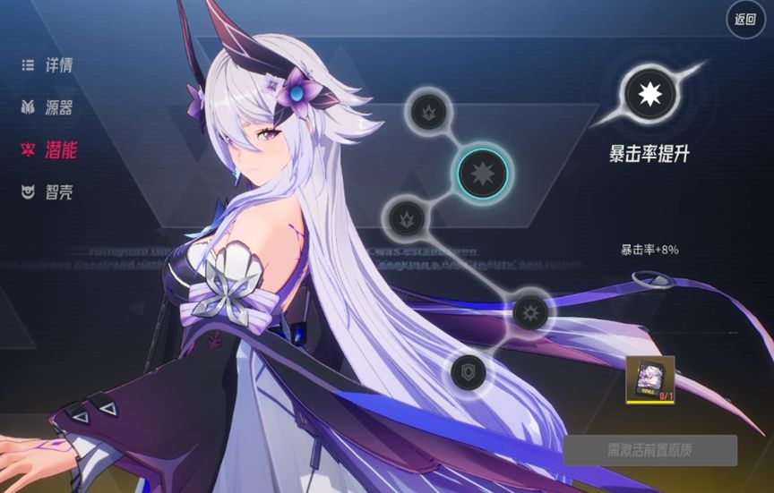 如果资源或经济比较宽裕的小伙伴,可以提升到潜能2或潜能2以上,点出暴击率提升,这可以提高面板的整体强度,分出暴击属性给暴击伤害或速度属性。