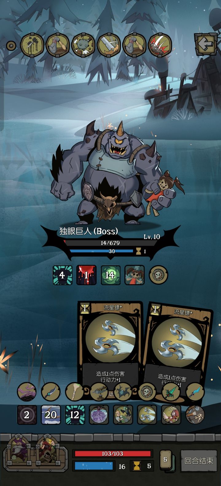 双倍回旋镖打出后,会卡掉一个卡牌格,图示在结束回合后,应该得到三张流星镖,但是实际只有两张,而且双倍回旋镖之后,只会有一张回旋镖洗在牌库顶上