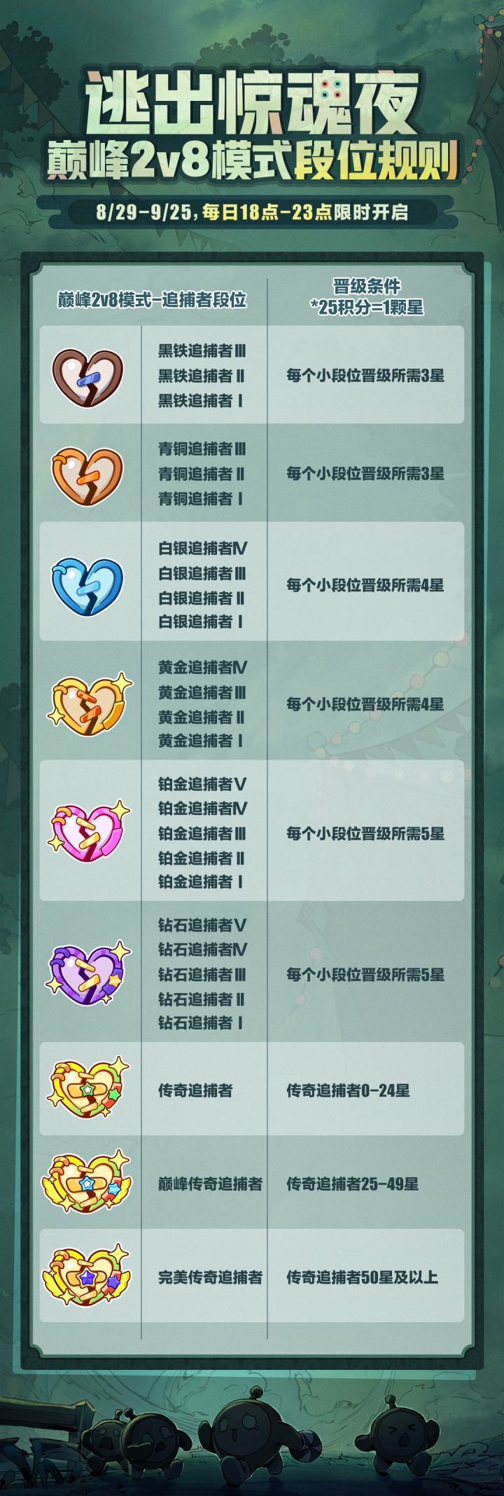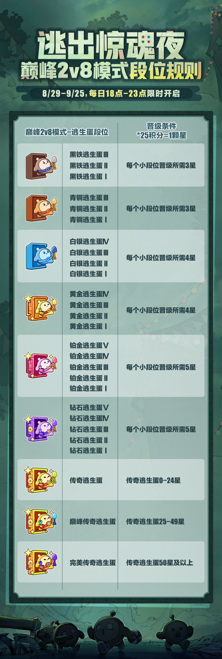 戳图片了解段位划分和积分规则,开启你的惊魂夜传奇之路!
