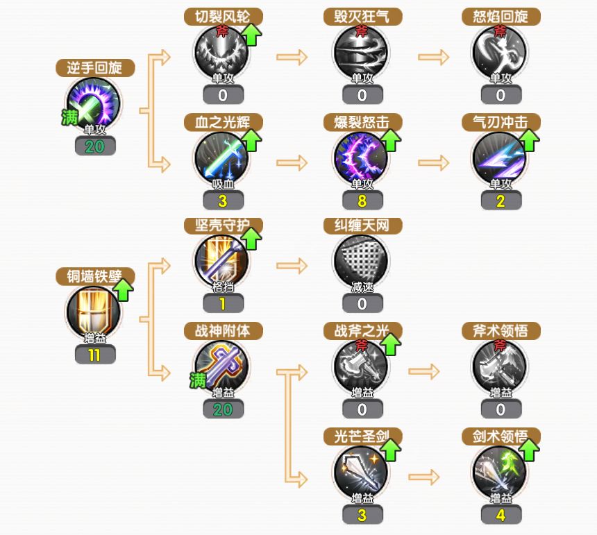 巨根、秋辞等伙伴提出优化思路:首先把逆手回旋加满;接着将毁灭狂气和怒焰回旋提升到11级,如此既能保留一定生存能力,也能稍稍弥补输出方面的不足