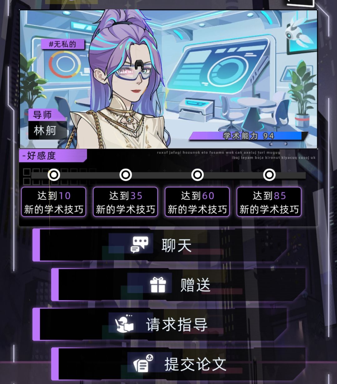 聊天/赠送:增加老师的好感,获得学术技巧