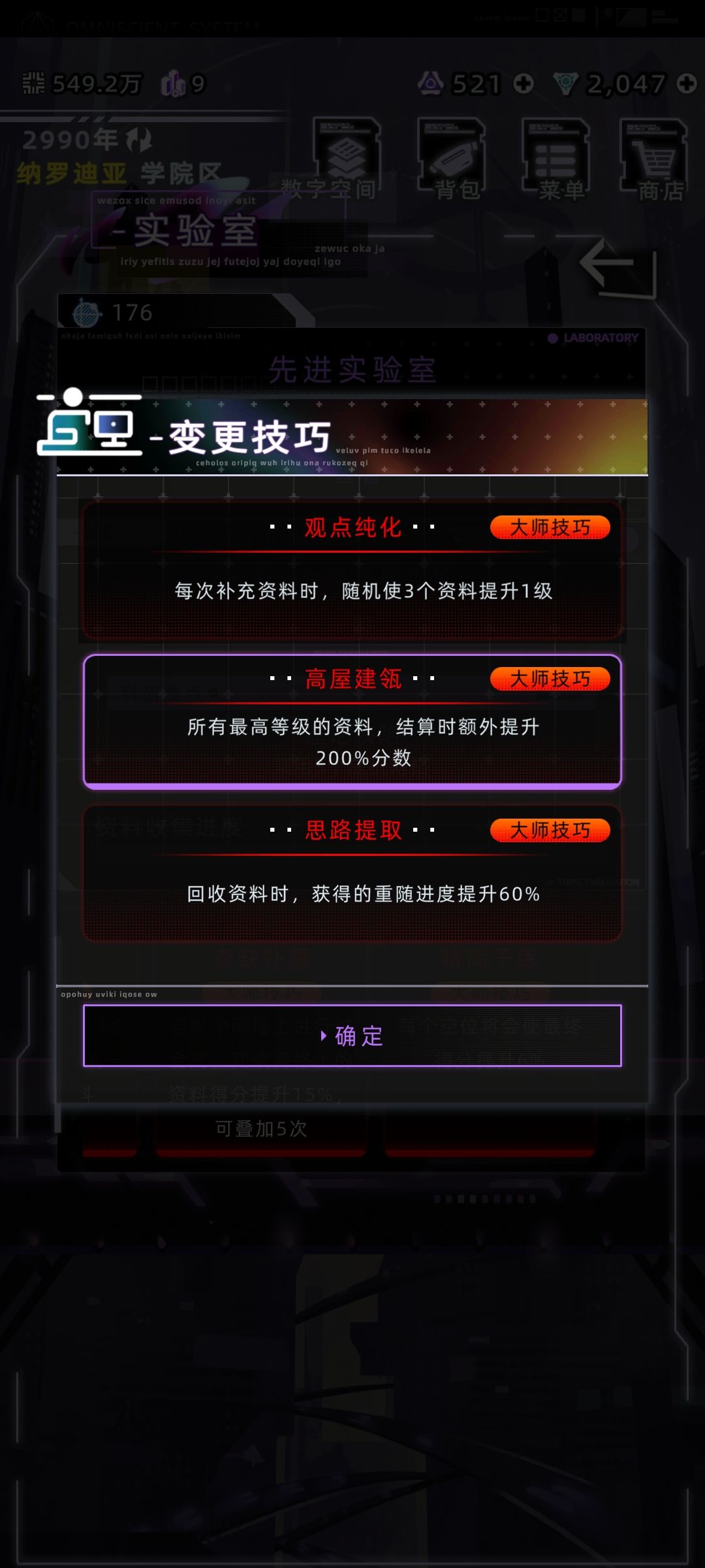 ⭐️⭐️⭐️学术点优先升级实验室,其次筛选重置论文技巧,重置方式跟世界树一样(但是没有保留原来的,如果想要原来的,就只能继续筛选到想要的那个)。升级技巧需要学术点。