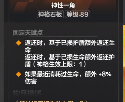 高额基础护盾和硬化,可替换选项很多,自行斟酌即可,如饮鸩止渴,圣洁,以及增伤都行