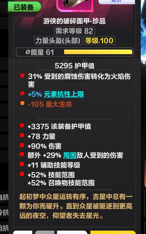 8w+护甲,提供了80的物理伤害减免和48的元素减免(可以点出灰烬装甲,进一步提高元素减免)