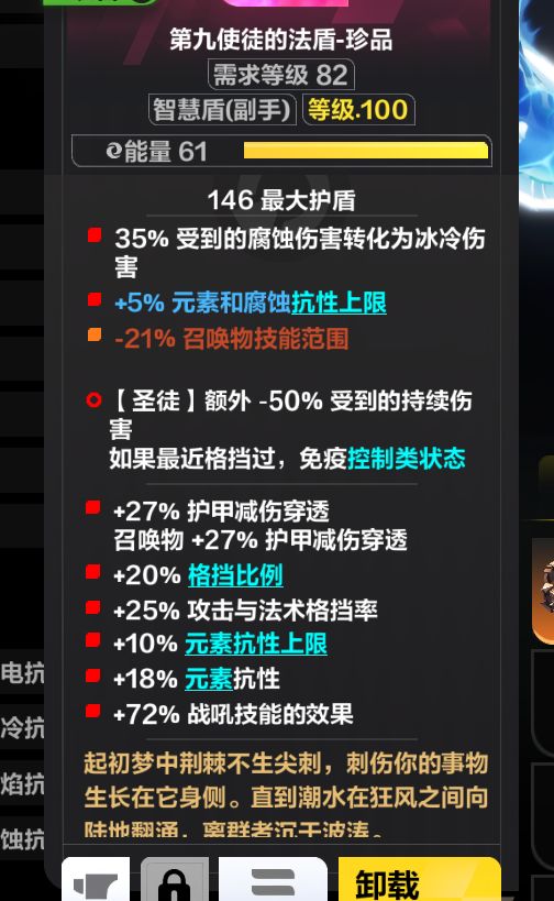 通过盾牌至臻后缀,加两条解梦,可以拿到20抗性上限,通过三个基底,可以拿到腐蚀百转