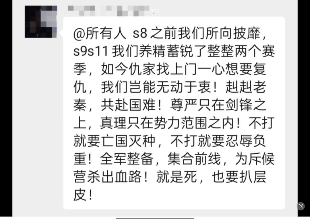 23点左右,秦川方面通过金钱攻势进行动员,成功组织起了一波攻势,出人意料的冲出了包围成功铺到了距8级城15格左右的距离,与此同时白玉京方面迅速反应,组织大部队进行阻击,将秦川部队打回去山口,在经历20分钟的熬战未果后(白玉京还在不断增援部队)最终取消了突围。