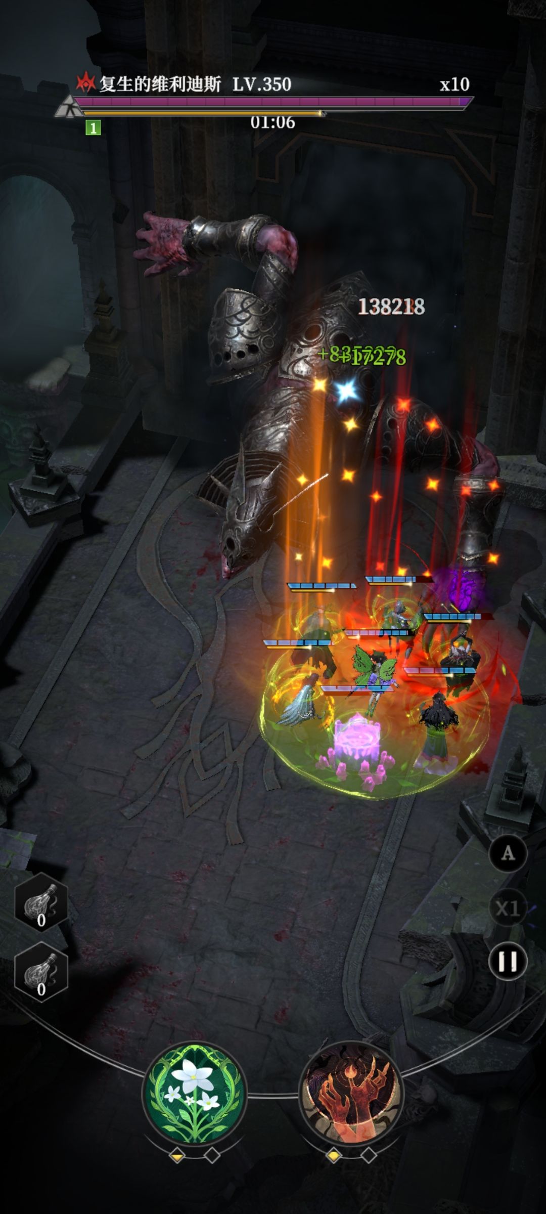 操作的话,起手直接丢2级瓶子接着丢3级,恶魔不放,等boss大招快好了,用多里安召唤恶魔,看运气boss会不会大到恶魔,第一次大尽量不要减员。