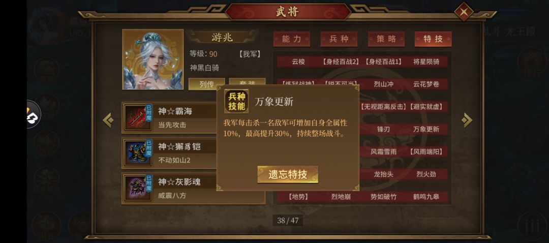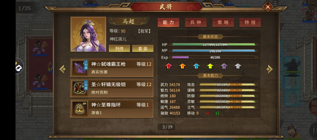 这个配置,马超属性和输出不弱于吃一大堆特技的游兆,尤其是有了忍者的文武双全和声东击西,3万层以后马超带戒指都能独自清理很多关卡。
