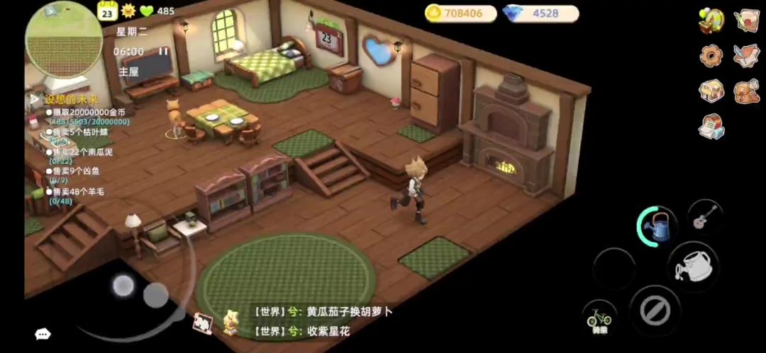 ○种田开始需要锄头翻地,后续需要浇水、收获、播种和收割,体力越多越好,如果氪金了机器人、收获法杖等会极大减轻工作量。
