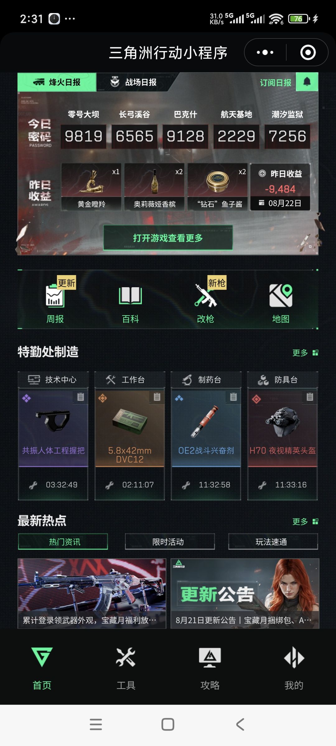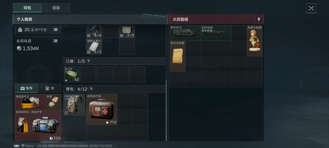 应该是一百多把的时候,差不多养成了,我换成手机端开始玩(武器箱爆率显著提升)竖着两格从弹夹变成了哈吉密,高级咖啡豆,4格从G8大弹鼓变成了炸药电缆马达6格民用炮弹变成了子弹零件(军用炮弹还是少),巴克什我最喜欢的复活点是营地,因为2分钟我就能吃饱去送死,而且高级咖啡豆很多 图6