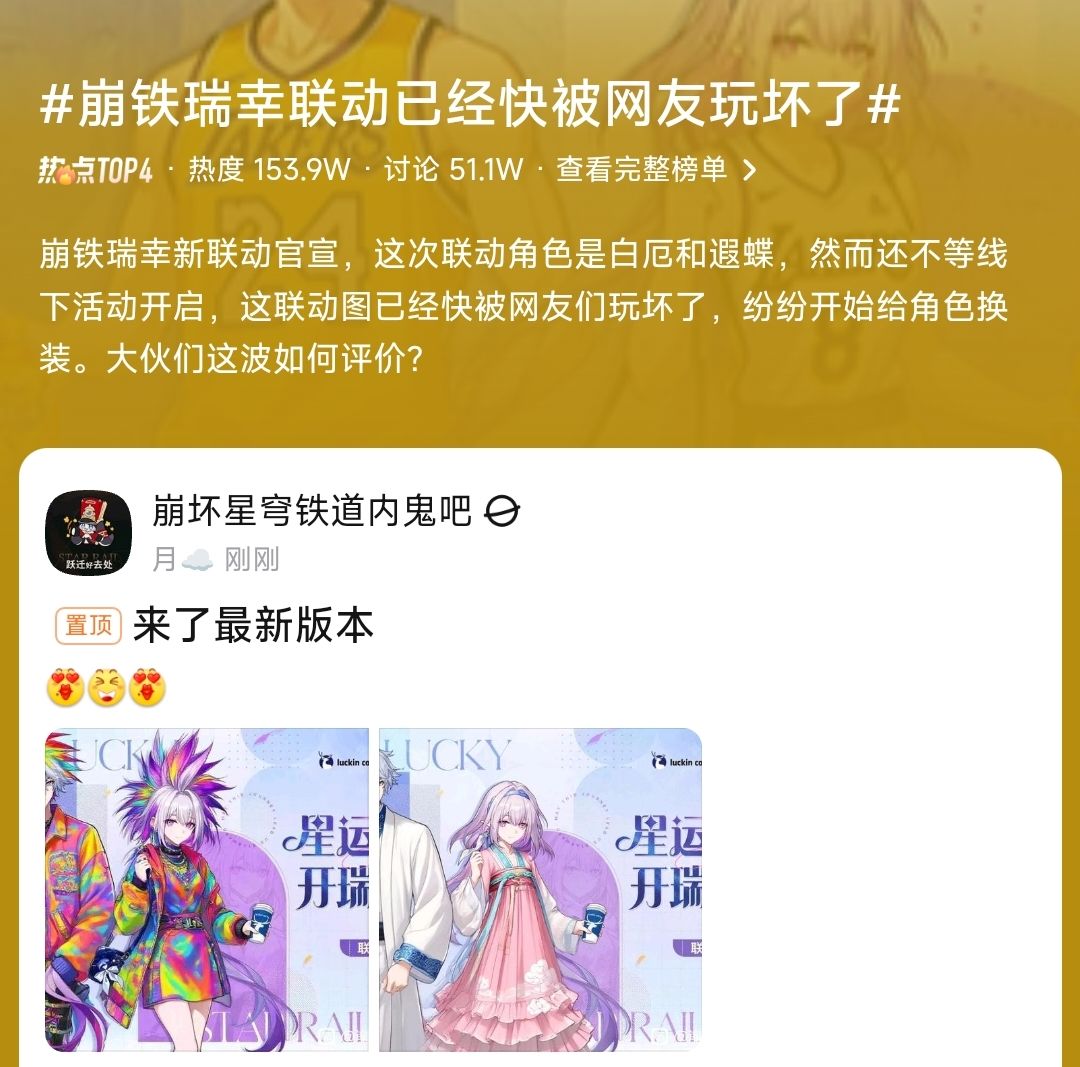崩铁瑞幸联动👍网友给玩成了暖暖换装哈哈