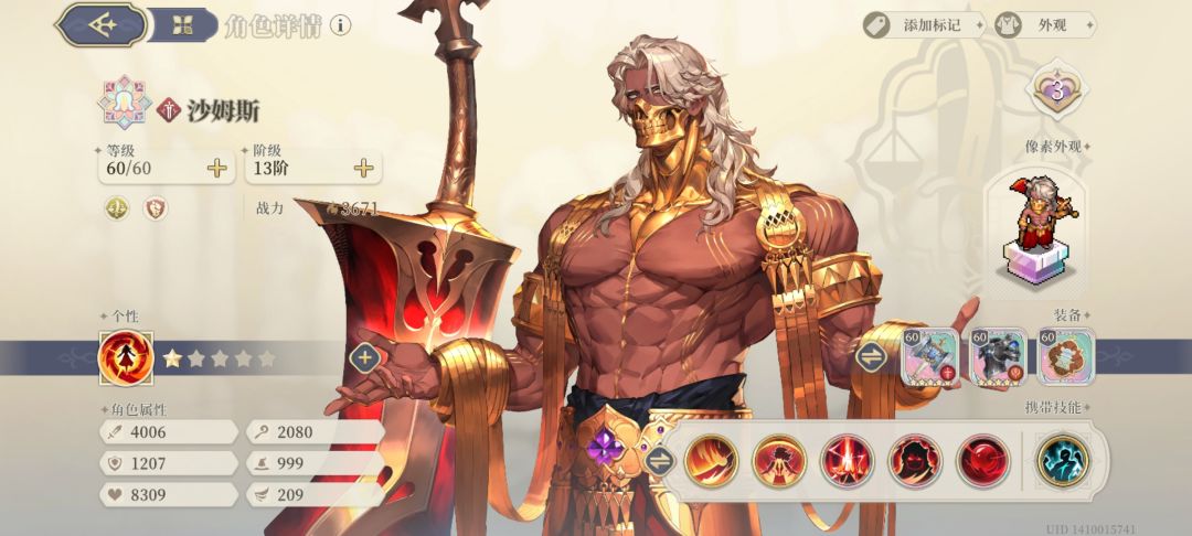 1.个性,没有太多的要说的,除了普通的参数提升外,重点就是个性技能,能瞬间让自己获得10层解放,进而触发大招的额外效果。4星以后会解除燃血的副作用,低星也可以通过技能代替。