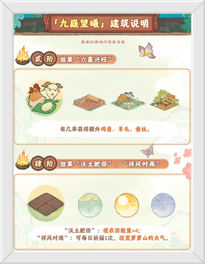 2:贰阶效果〔六畜兴旺〕有几率获得额外鸡蛋、羊毛、蚕丝。