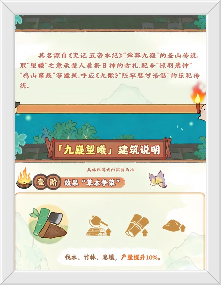 1:壹阶效果〔草木争荣〕伐木、竹林、息壤,产量提升10%。