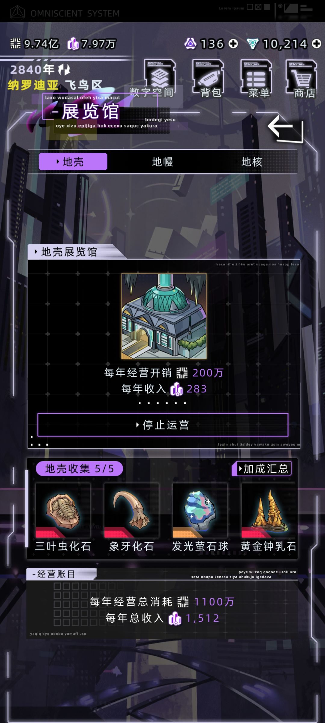 九,收益,分为三部分,工资,展览馆,挖矿出售矿石(信用点)和展品(股权)