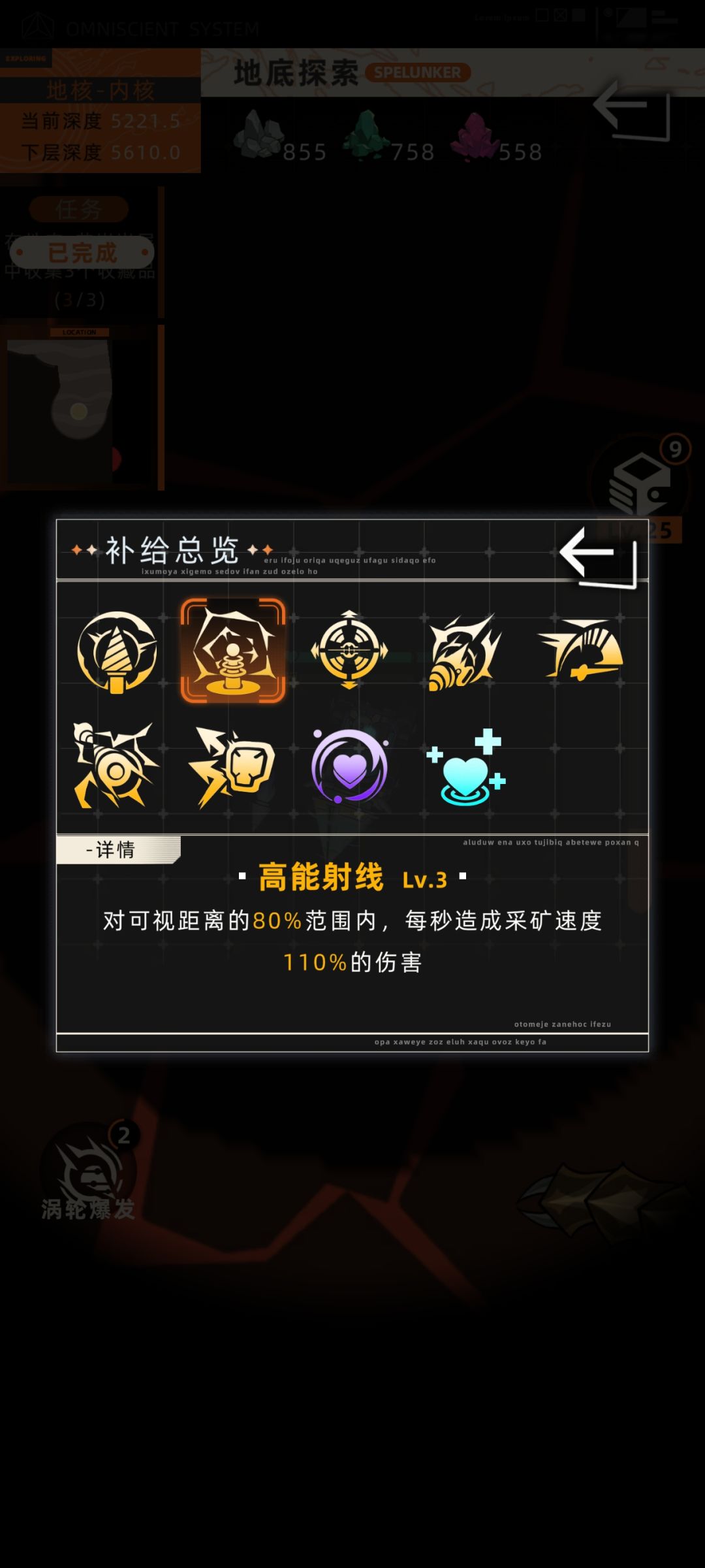 七,补给选择,高能射线,涡轮爆发必选,回血的根据自己想要选择,高速模式在有攻击型补给之后可以选,增加数值。
