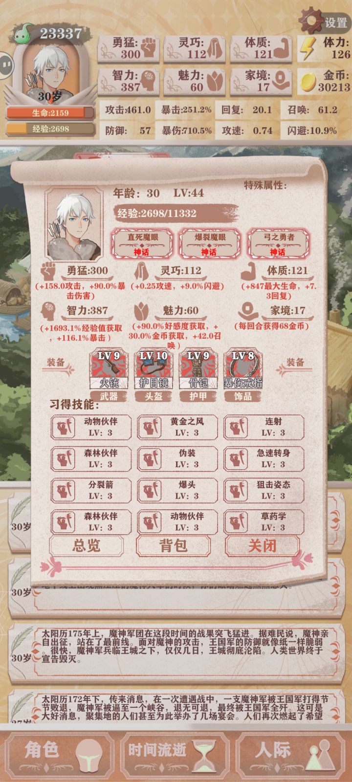 在天赋上我选了两个魔眼加弓之勇者,因为相信自己的运营能三万块钱没选打工战士,技能之神我用不来,就选了个自己感觉比较舒服的。
