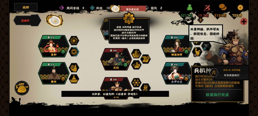 碰巧我李靖政策还没点过,一会直接打首都了