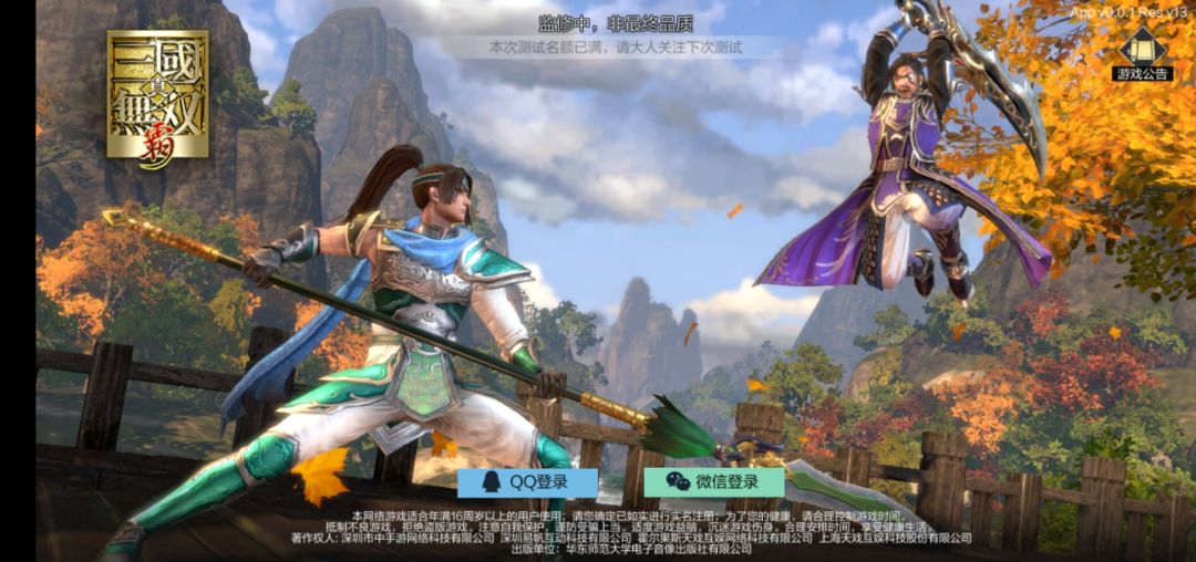 本来作为三国无双老粉,心心念念等了很久。结果获得测试资格,但是上不去,说满了!心里落差太大了!
