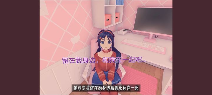 而游戏最让人印象深刻的,是它用“反差感”营造的独特氛围。画面采用纯手工绘制的3D风格,粉色的墙壁、可爱的玩偶、明亮的灯光,看似是二次元恋爱场景,却会在细节处藏着恐怖伏笔;米塔的角色设计更是细腻,从温柔时的笑眼弯弯,到病娇时的眼神突变,再到不同服装对应的情绪状态,配合全配音的台词,让角色的“疯狂”显得真实又窒息。此外,游戏还准备了6个不同结局,有的是彻底被困在虚拟世界的悲剧,有的是达成和解后获得离开的许可,甚至还有隐藏的“反转结局”,需要玩家留意每一个互动细节才能解锁。