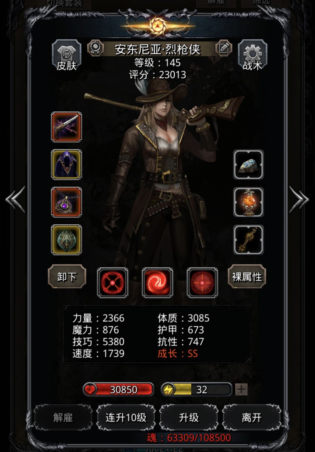 等级:能高尽量高呗(我推太快了没魂,东拼西凑)优先剑豪拉满,枪的话不暴毙就行属性要求没那么高