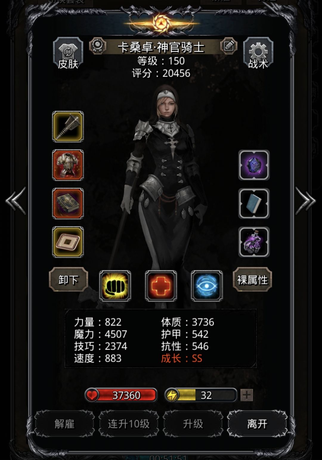 战利品和魔石:1.烈枪一定要把命中拉上来,不然二阶段挂不上破甲,剑豪就刮痧了,很容易缺伤害。同时兼顾体质和技巧,我图上这个其实不对,体质尽量再高点,而且不需要单吸(没伤害);石头带海鸣石保证体质,尽量满命中 2.圣光技巧收益高,奶量也重要,尽量魔技兼顾,有影心的卸负可以带星国;魔石自然是龙巫妖 3.神官优先堆魔力和回复,有好的护甲体质也可以补一个,毕竟需要扛伤害的;石头带19图副本换的星辰之石(更好的也行,但要保证体质) 4.剑豪这个需要自己酌情调整,首先石头要星界石,多出来的体质很关键(我用自制的40体85力总是暴毙,星界石60体每次都稳稳的坚持到最后),战利品必须有单吸,命中尽量110+(小怪有20闪避),剩下尽量把力量和物伤拉满,此处可以以星辰之力的伤害来算,十五万多理论上也有机会,图中十七万多就不太刷脸了~