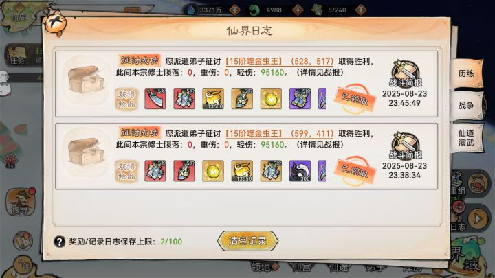 我的阵器如图只有紫色323。但是人物练度还算比较高,如果装备练度跟不上的话向下兼容更低级的仙墟与首领应该也没问题。希望能给大家一些参考与思路。