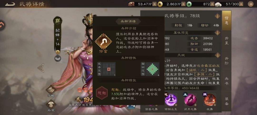 貂蝉的设计,是对其历史角色一次极为成功的解构与重构。她并非一个简单的“美女”单位,而是一个机制独特、战略意义极强的环境卡与体系核心。100的毅力定义了她“红颜铁骨”的内核,其所有技能都围绕着“转化”(攻精互换)与“操控”(离间、再动)展开。她在以男性为主的阵容中能发挥出200%的实力,既是男性英雄最强的“增幅器”,也是敌方男性队伍最棘手的“梦魇”。使用貂蝉,意味着你选择了运营与博弈,她能用她纤细的手腕,为你撬动整个战局。她是倾国之刃,是乱世中最绚丽也最致命的那一株毒药。