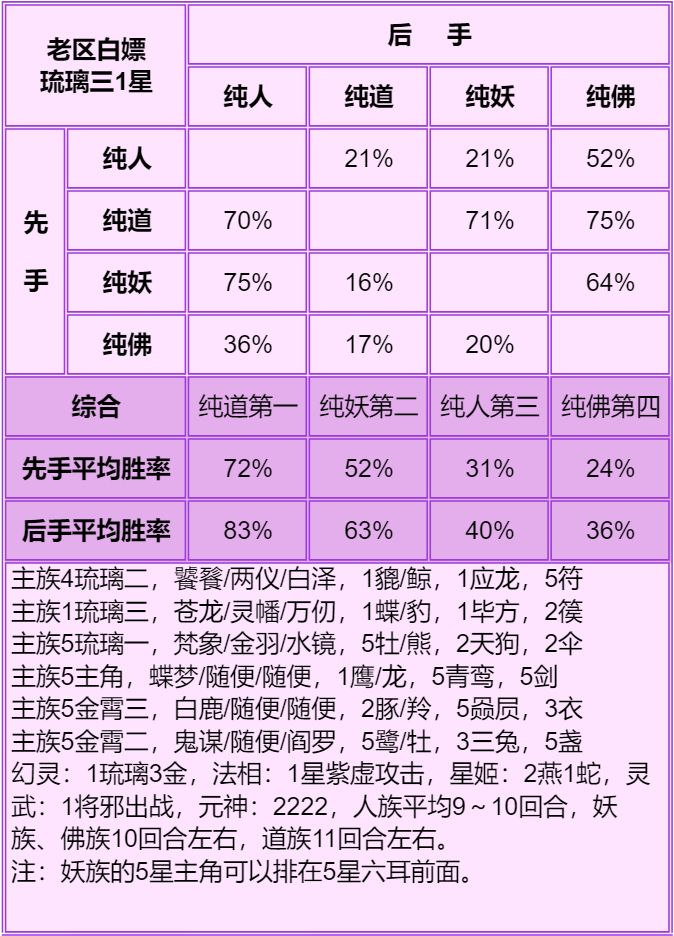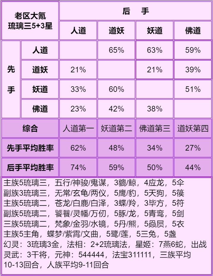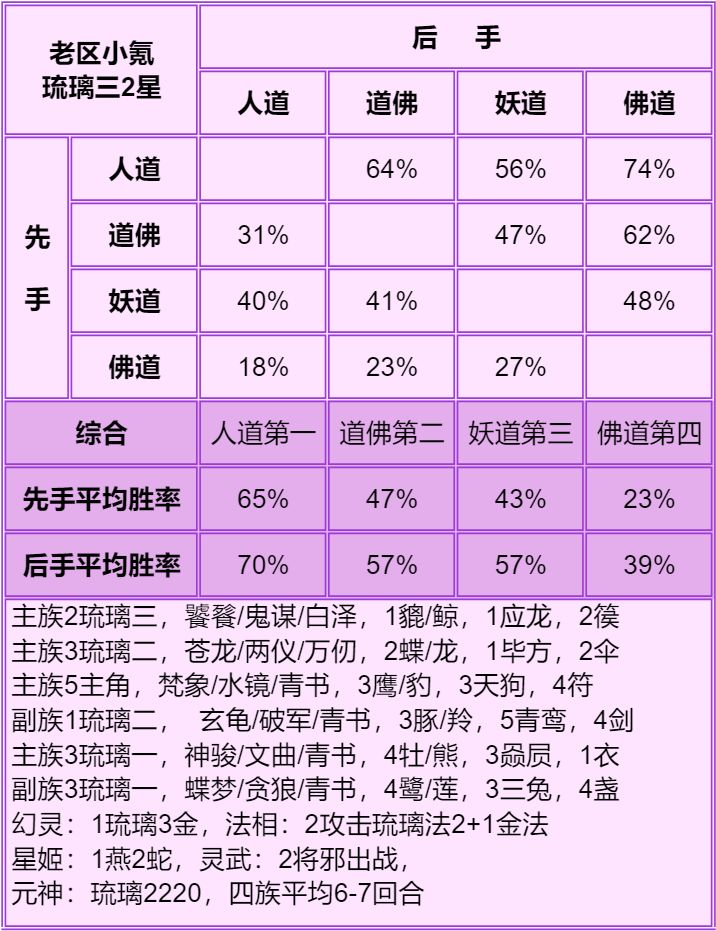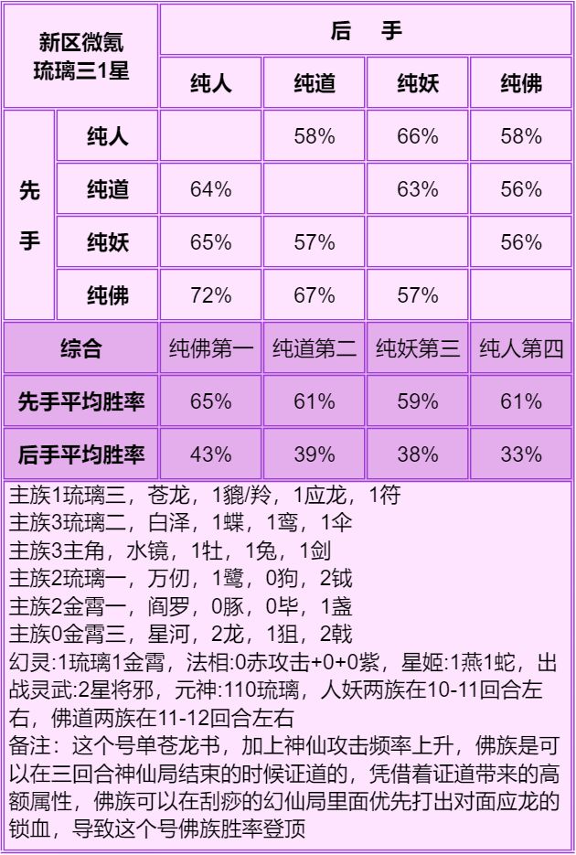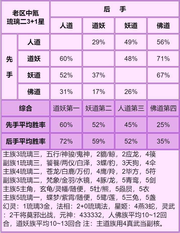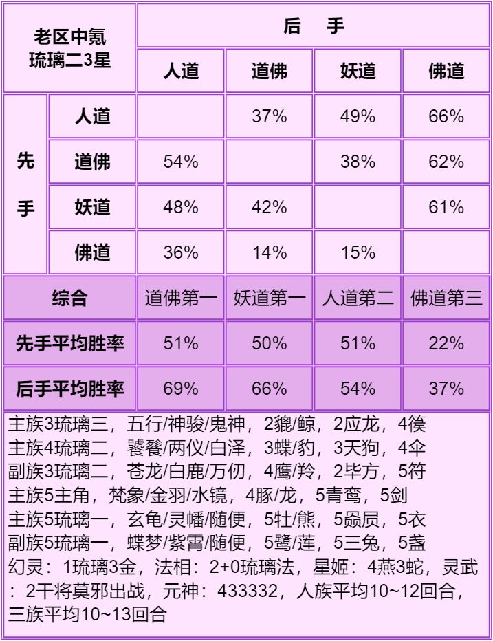 1.首先说明只能看总体的种族强度:人>妖≥道>佛,细究到每个档次的种族强度不准,只能大致参考个六七成,主要看下搭配。