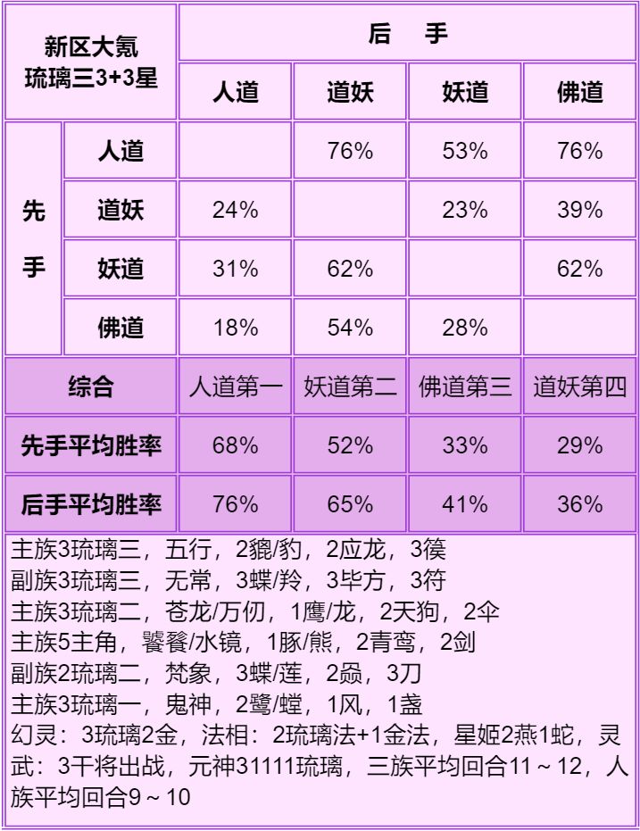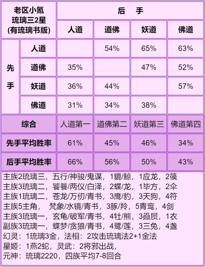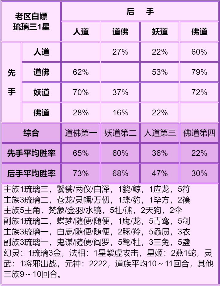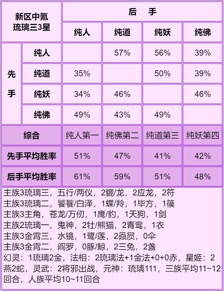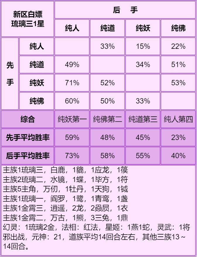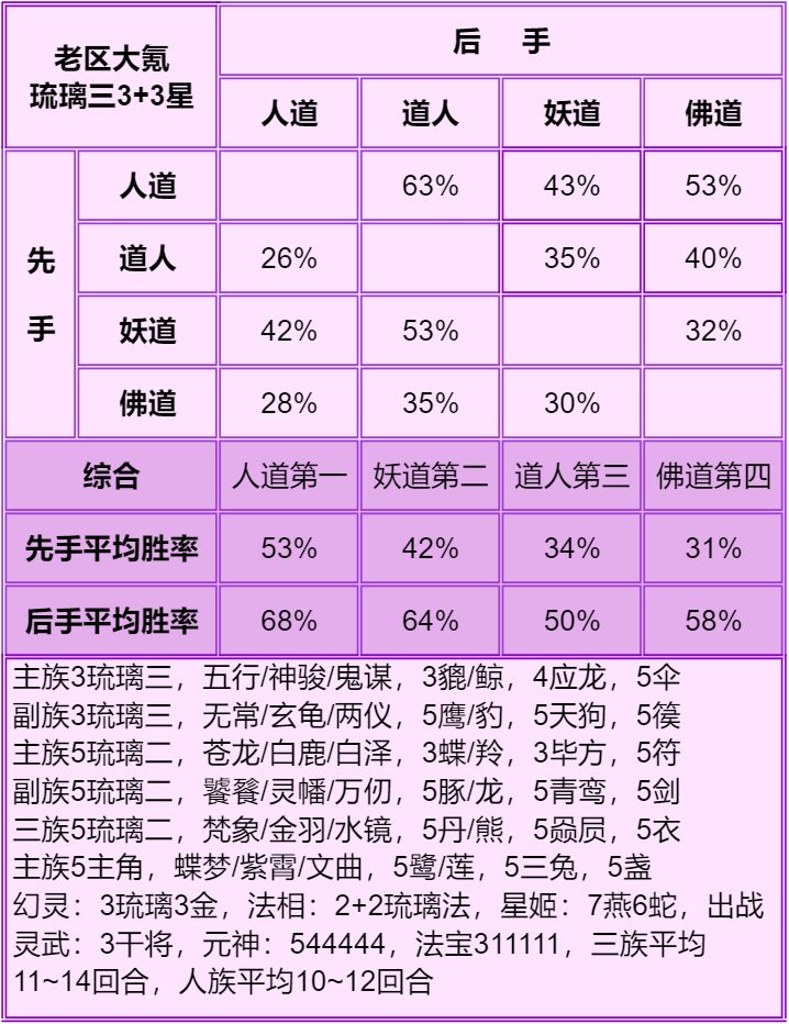 1.首先说明只能看总体的种族强度:人>妖≥道>佛,细究到每个档次的种族强度不准,只能大致参考个六七成,主要看下搭配。