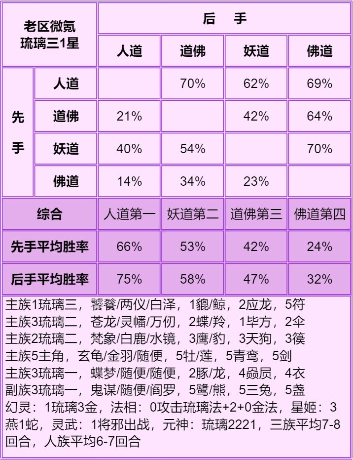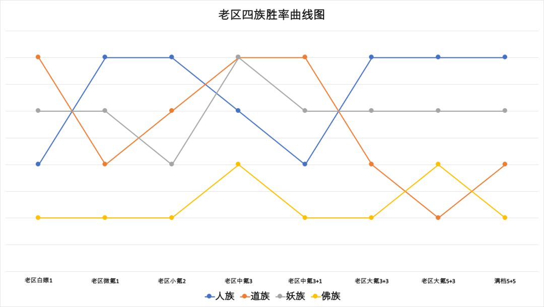 有几个新区低星情况表现好,纯属是新区特殊阶段主核互相刮痧的原因,具体看上面在人族写的,佛族真实实力参考老区表现,全是垫底。