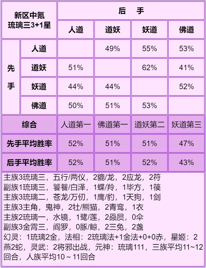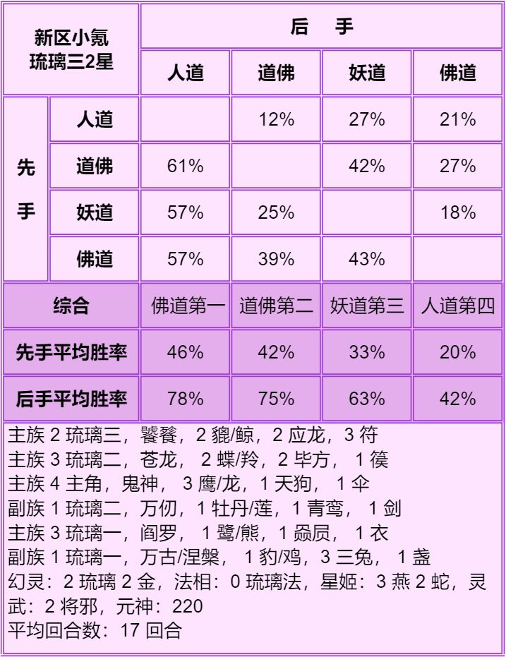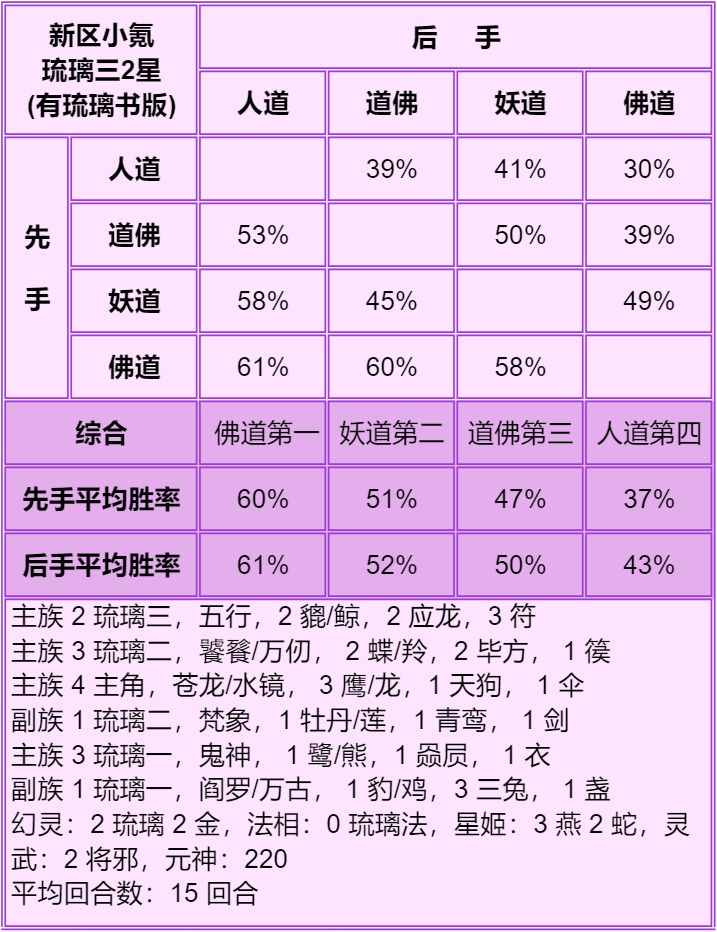 道副族是琉璃三+琉璃二时,副妖族好,其实副人族佛族都行,具体看回合,副妖族是适用性更广。