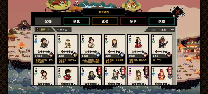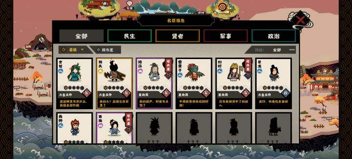 萌新,刚打到秦楚汉,只有这些名臣,给个刷取建议呗