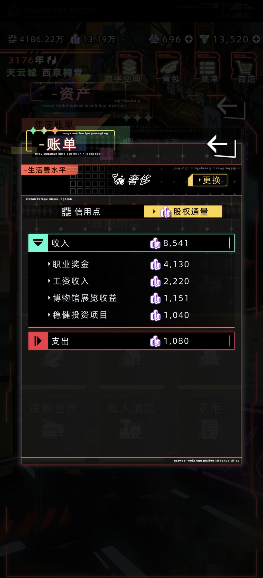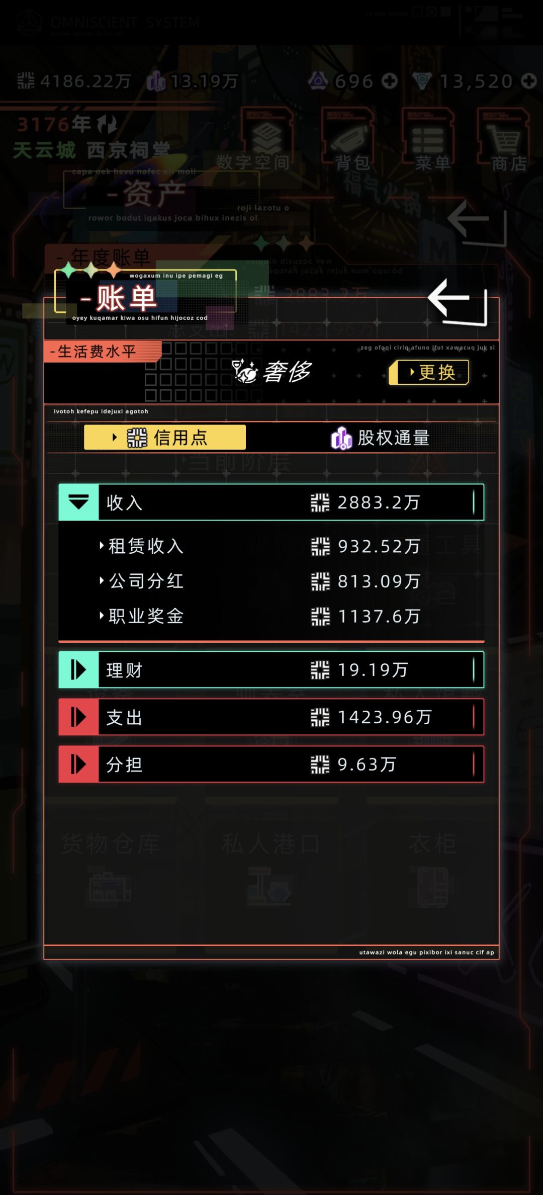 3、每年随便挖一下,挖到的矿石换成信用点轻松过千万,股权通量轻松过两千(图四职业奖金信用点1100万,图五职业奖金股权通量4130,展览馆的奖励也算在职业奖金里面,只算重复收藏品要扣掉展览馆的1688,也有2442,图六是图四图五当年的收获的矿石和收藏品数据)