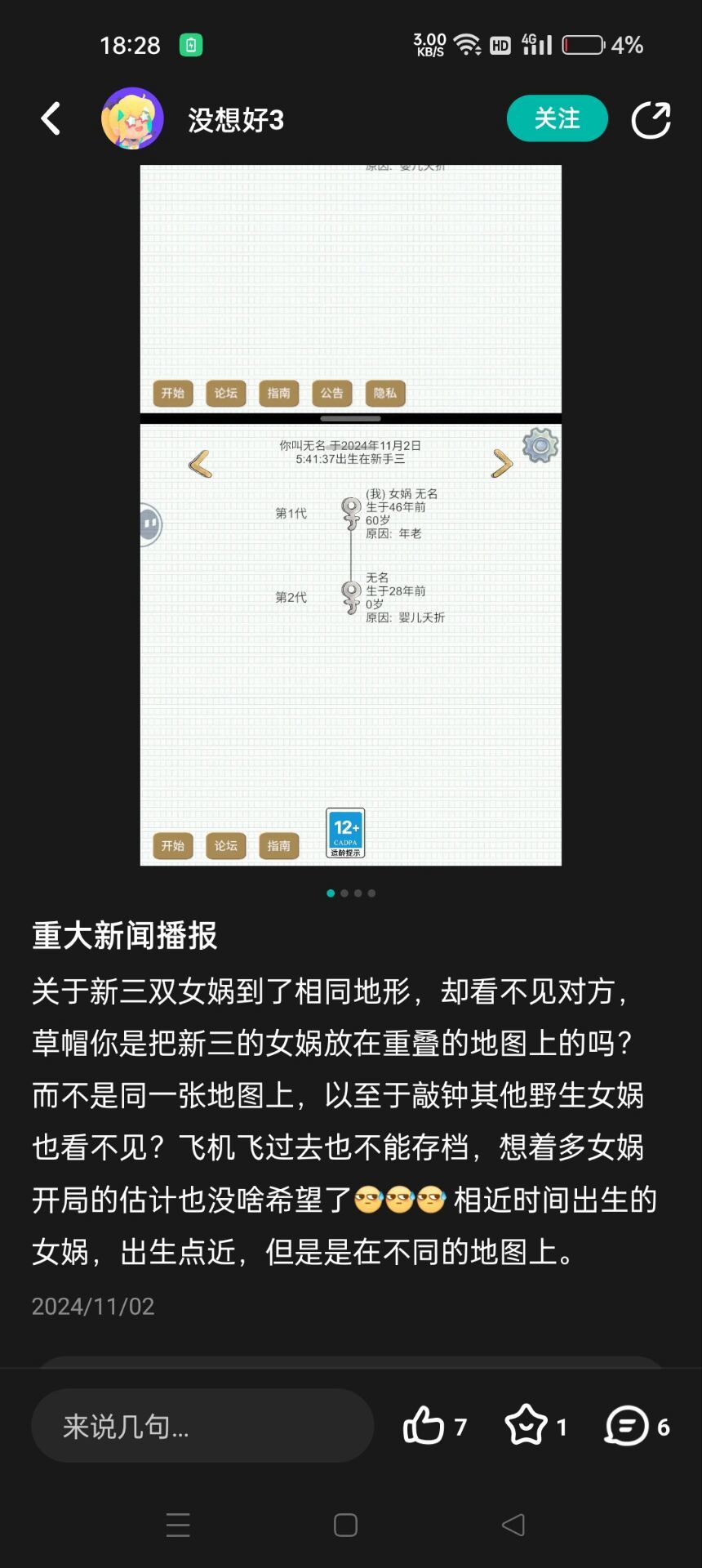 论坛上曾经有发文称在新三尝试多女娲,地形完全一样,却互相看不到对方!