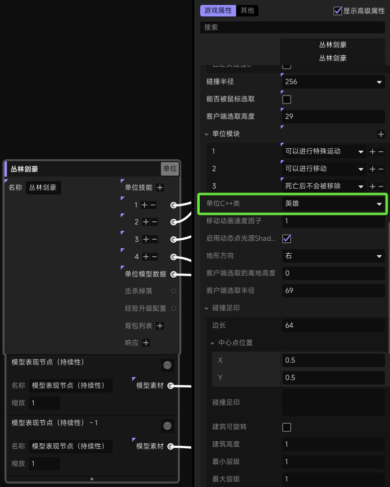 这里有一个要注意的是,如果要通过数编表单位属性C++类判断是否为英雄,需要在数编表里将布置在场景中待选择的英雄的“单位C++类”属性设定为“英雄”(P6)