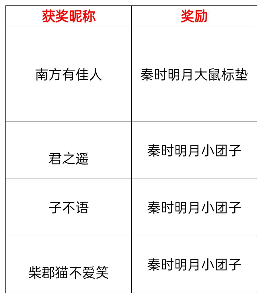 幸运锦鲤:3名,奖品:秦时明月小团子