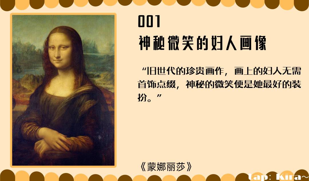 下面是图鉴(要是有误,欢迎指正或补充)001神秘微笑的妇人画像
