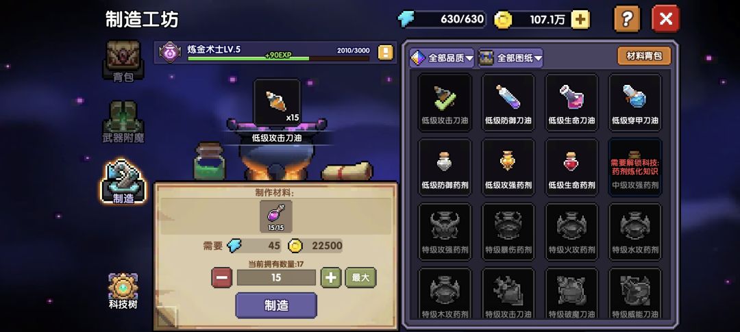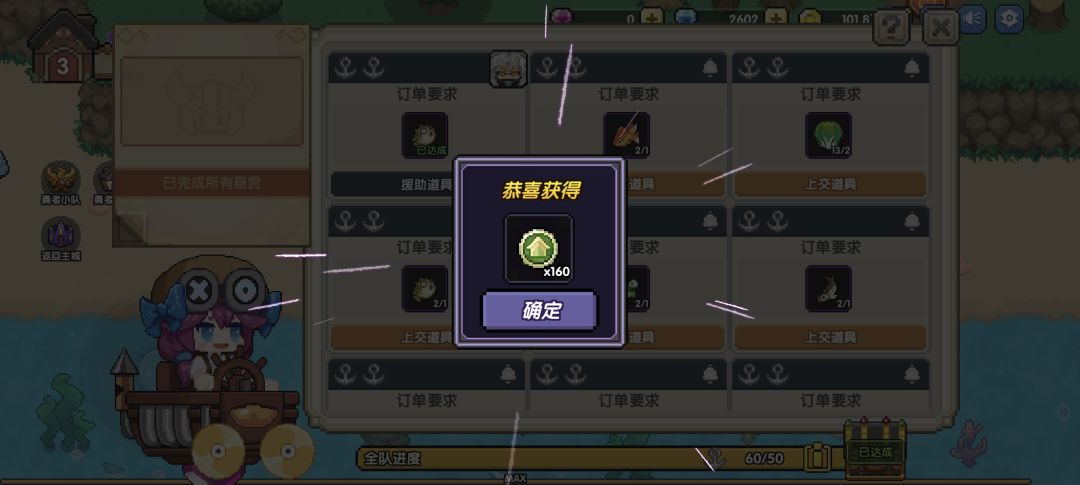 看一下订单中需要炼金道具的2进度订单(3进度前期做不了,后期不值得做)