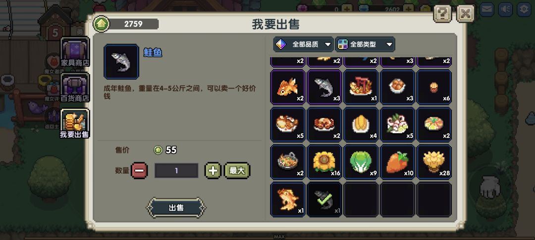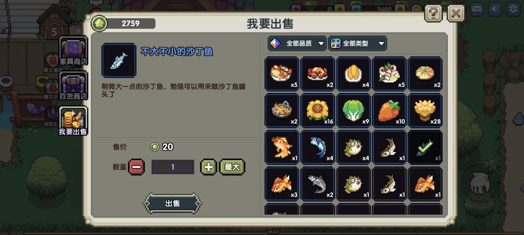 白色品质的蔬菜和鱼只能卖钱。蓝色品质囤着做菜用,紫色品质每种至少留2个,如果多了几个且缺钱就可以卖掉