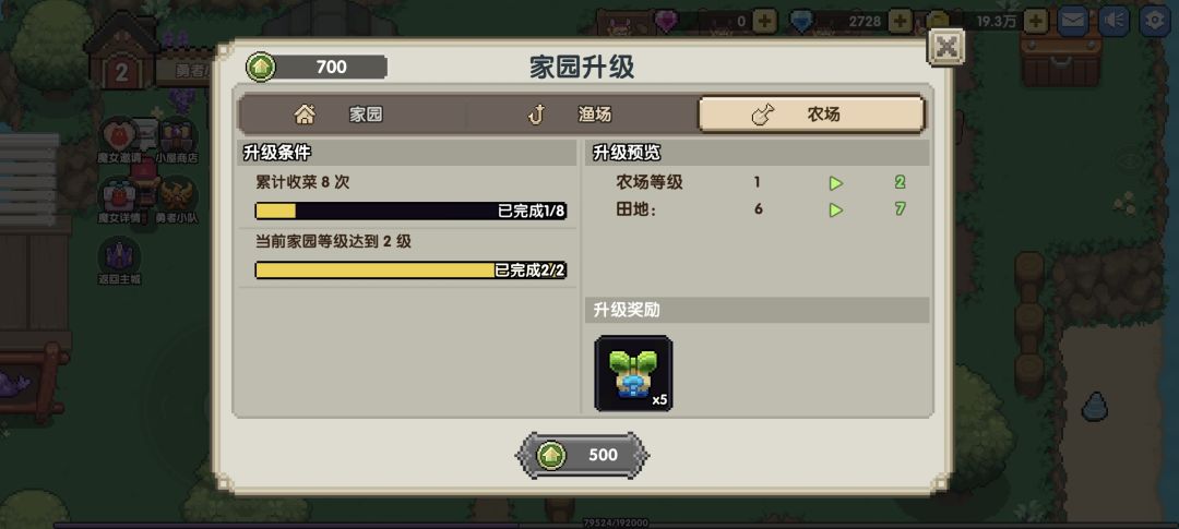 接下来的内容是解决勇者小队日常后才考虑的小屋升3