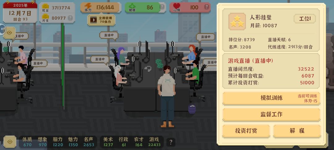 如图,在游戏工作室里的员工都是主播且热度高于30000,为什么触发不了那个成就(*꒦ິ⌓꒦ີ)