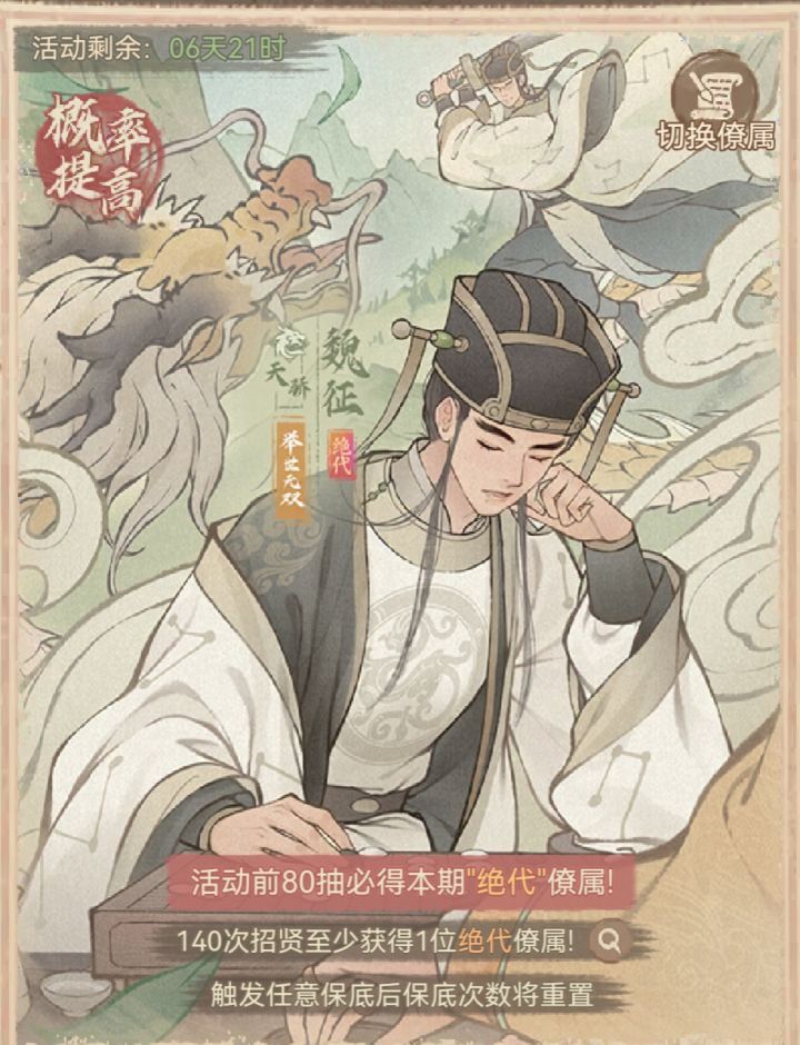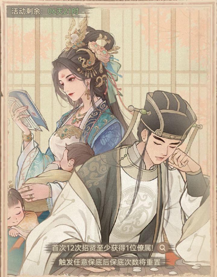 首次12抽可获得一个当期寮属:长孙无垢、魏征随机出无法指定。