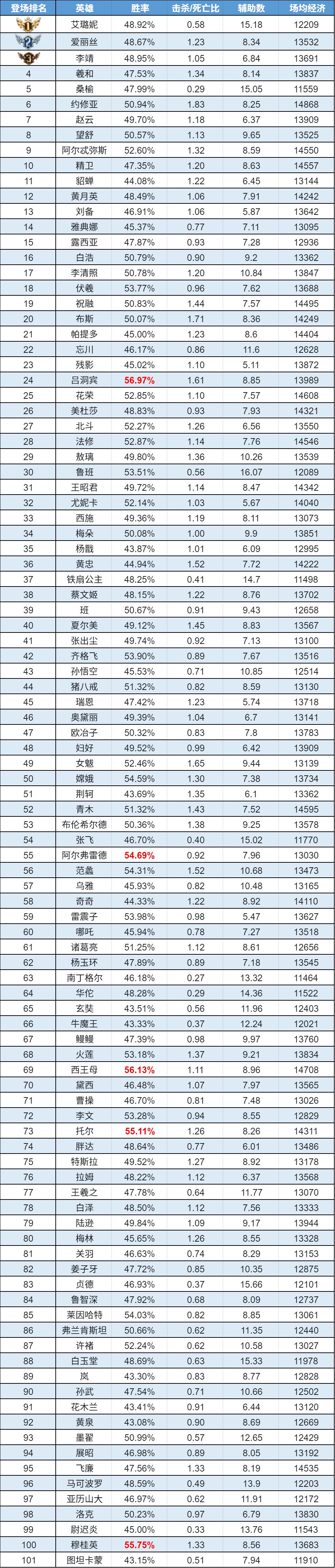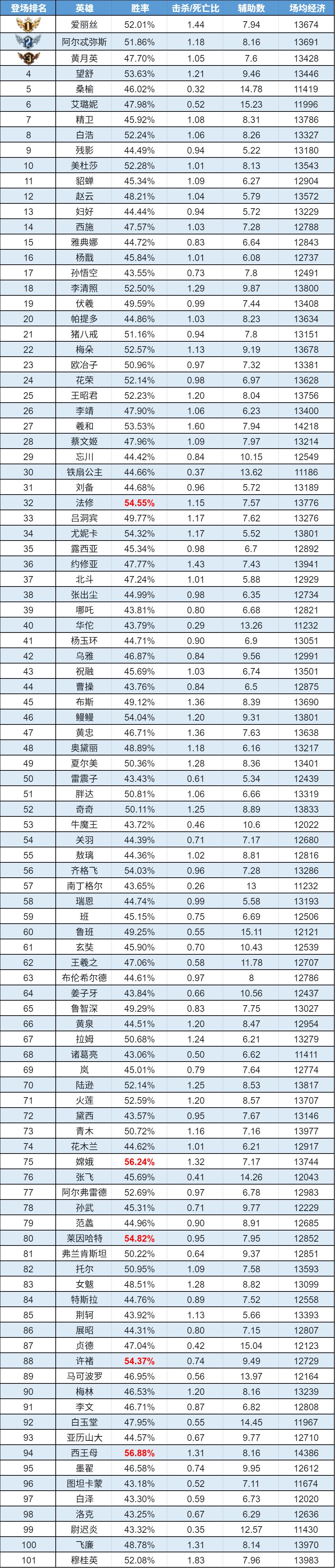 【低段位】重做帕提多登场排名提升62个名次;嫦娥斩获胜率TOP2,法修胜率重回前五;穆桂英均场经济排名进入前三。