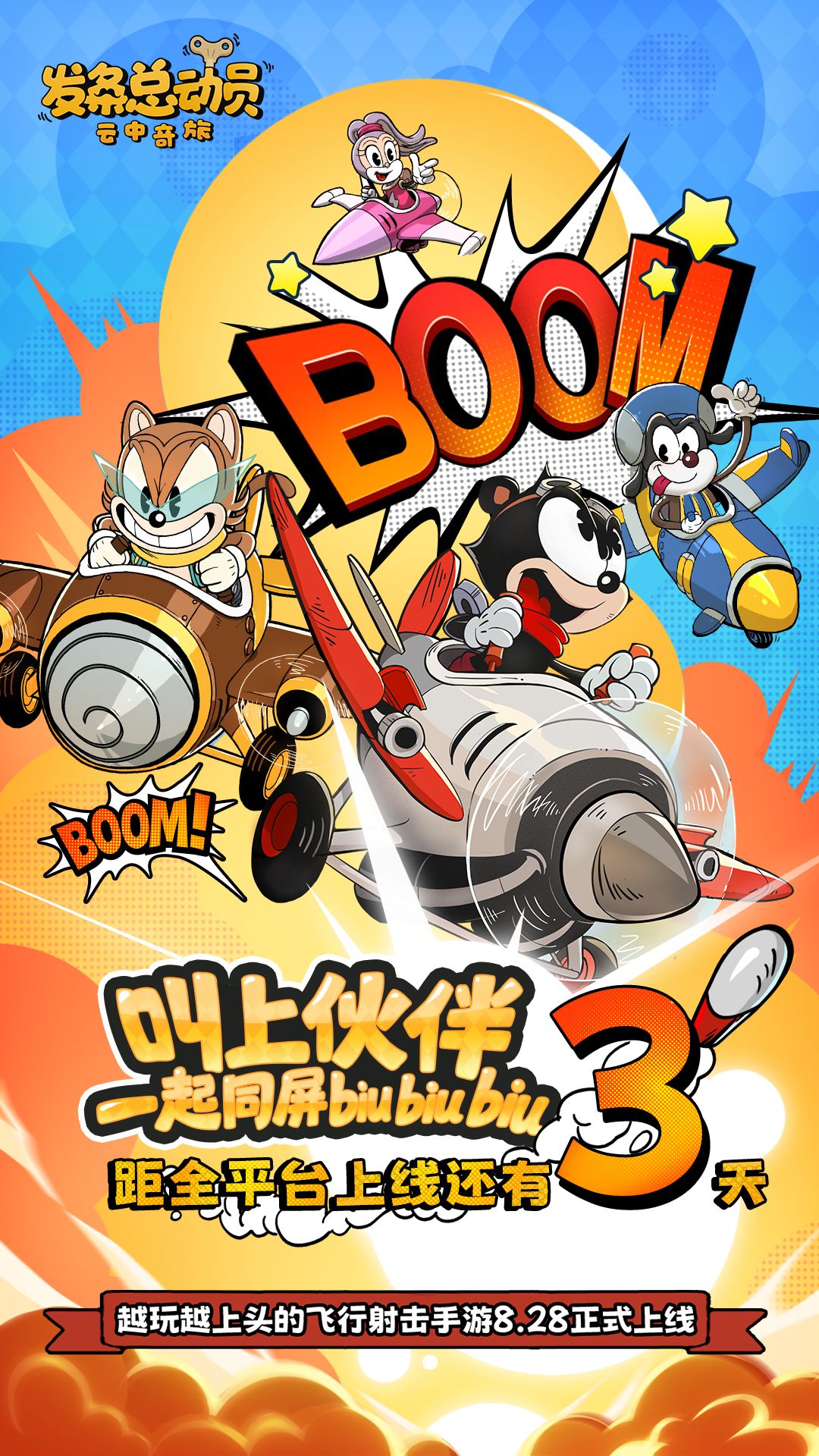 8月28日全平台上线,喊上战友同屏biubiubiu,解锁云端空战连击爽感!神秘竞速大礼隐藏彩蛋待爆,你的飞行冒险缺你不可,3天后云端见分晓!