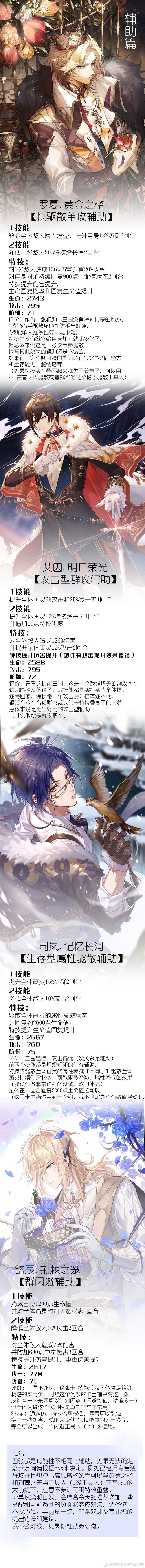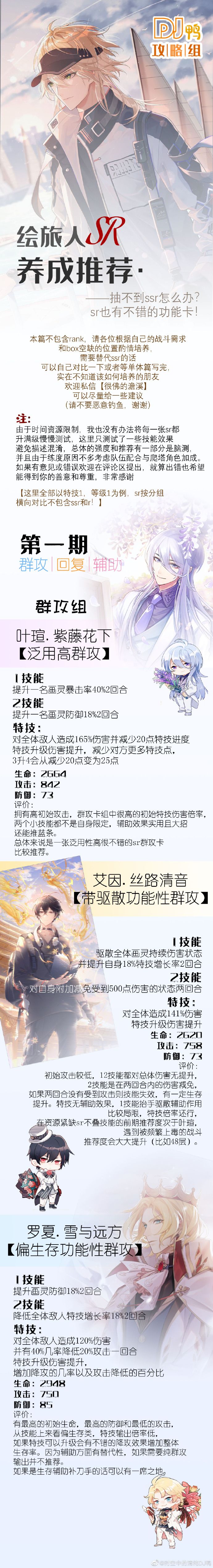 这里搬运了sr的养卡建议,如果没有强力的SSR卡也可以酌情养一下sr卡,搬运自网易大神的DJ鸭,仅供参考。