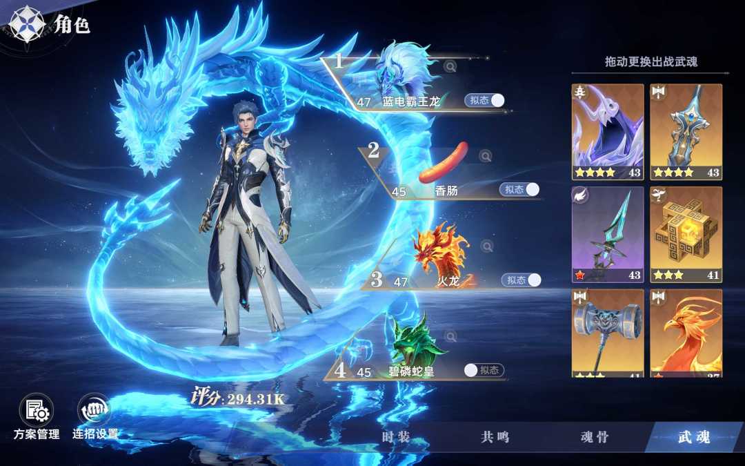 2.普攻武魂设置为蓝龙。